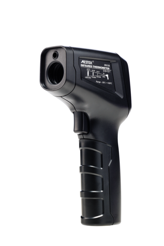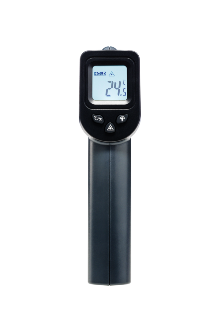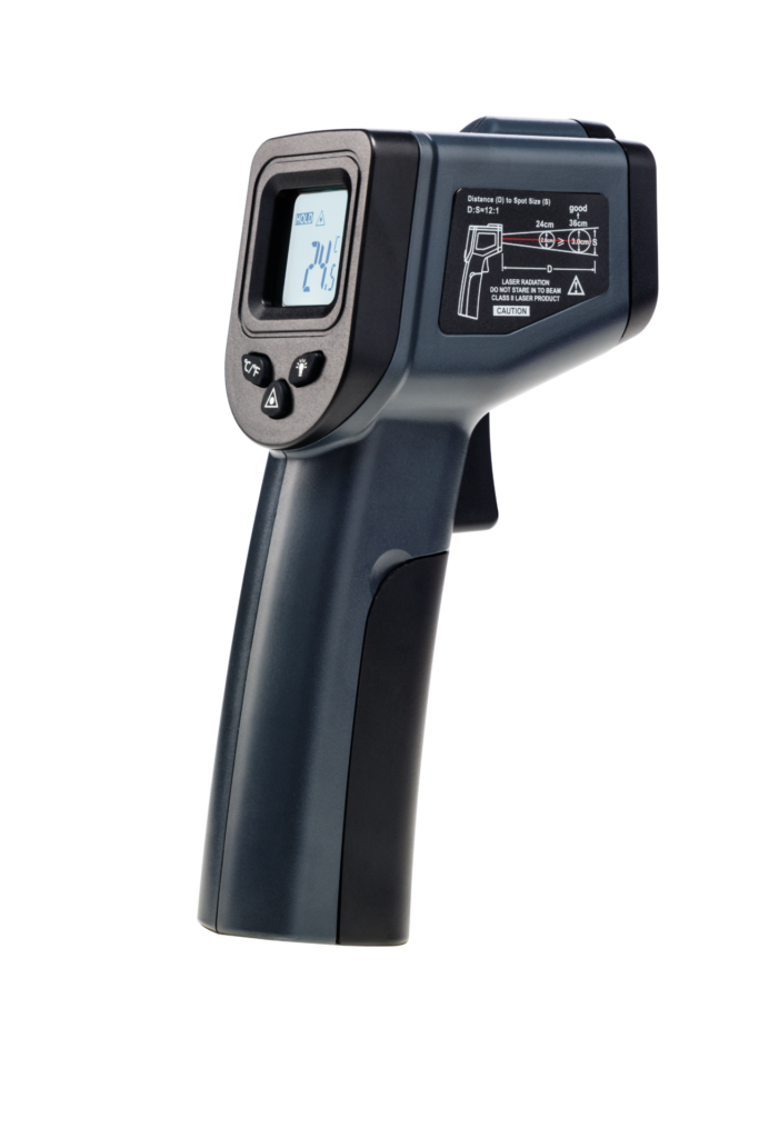 Infrared non-contact thermometer for measuring the temperature of baking stone and other surfaces. Temperature measurement range: up to 550C/1022F. The thermometer uses two AAA batteries, which will be included.